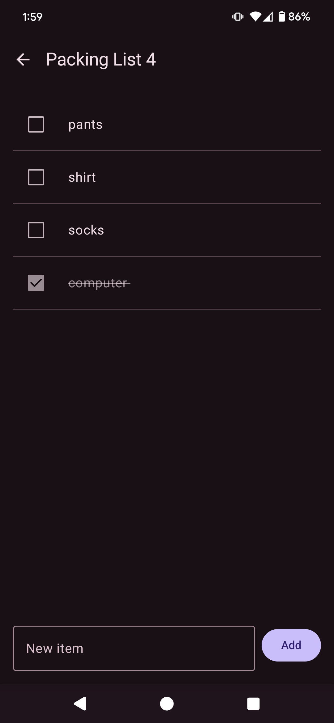 There's some small refinements to add, like being able to name the lists, but the core functionality is there. I didn't need to give much UI direction, which I was somewhat surprised at. For example, the display of “0/2 items packed” was not something that I came up with or specified, that was all Gemini assuming it would be a good feature. Which I actually agree with.