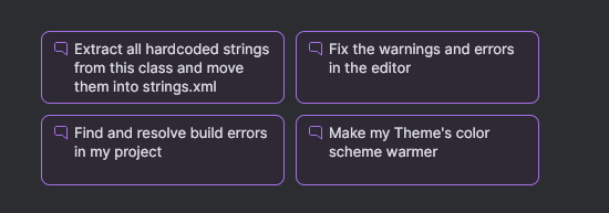 When you open the Agent Mode tab in Android Studio, you're prompted with some examples of how to use the tool.